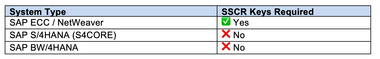 SAP Note 3229521: Confirms that in systems where the component S4CORE is present, the SSCR key procedure is deactivated.